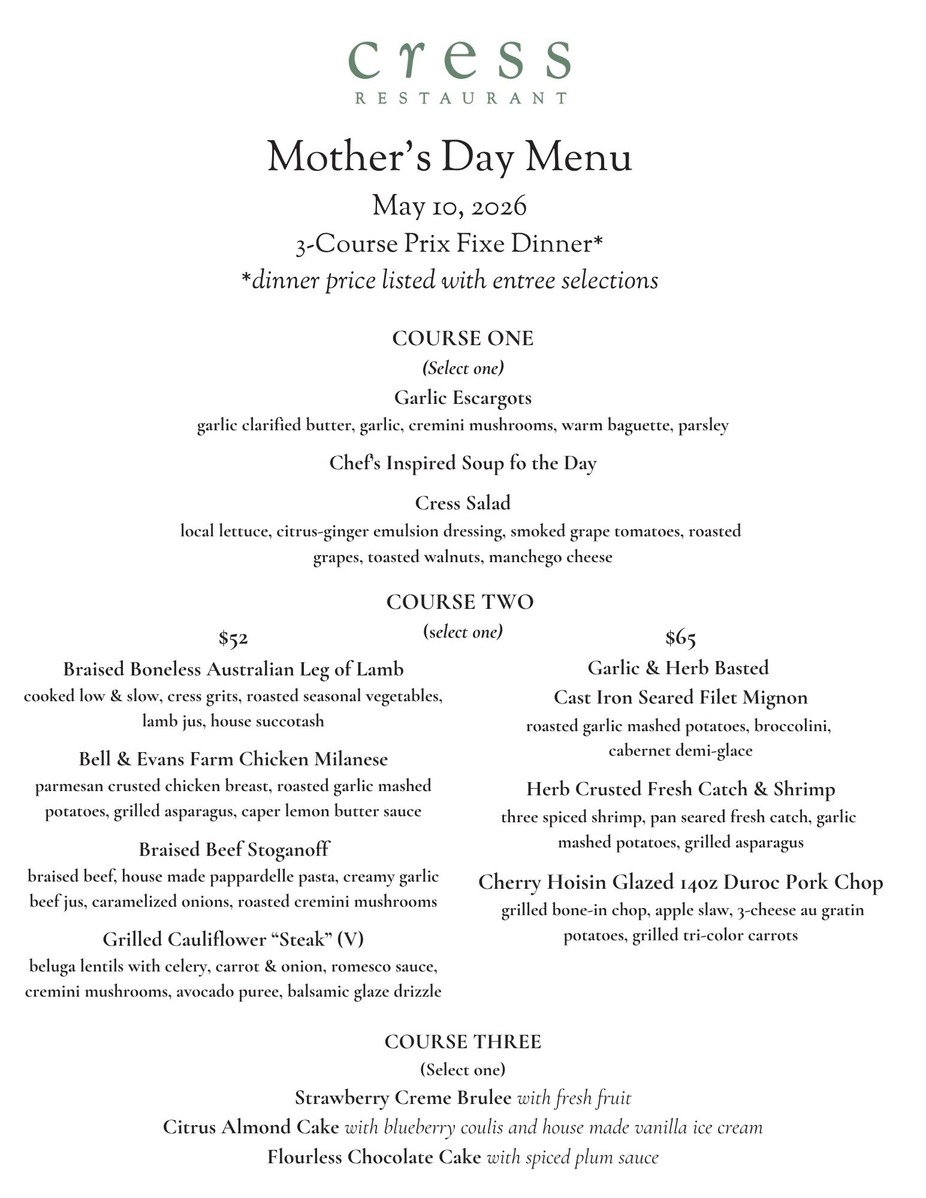 Join us Sunday May 10th for a very special Mother's Day Dinner