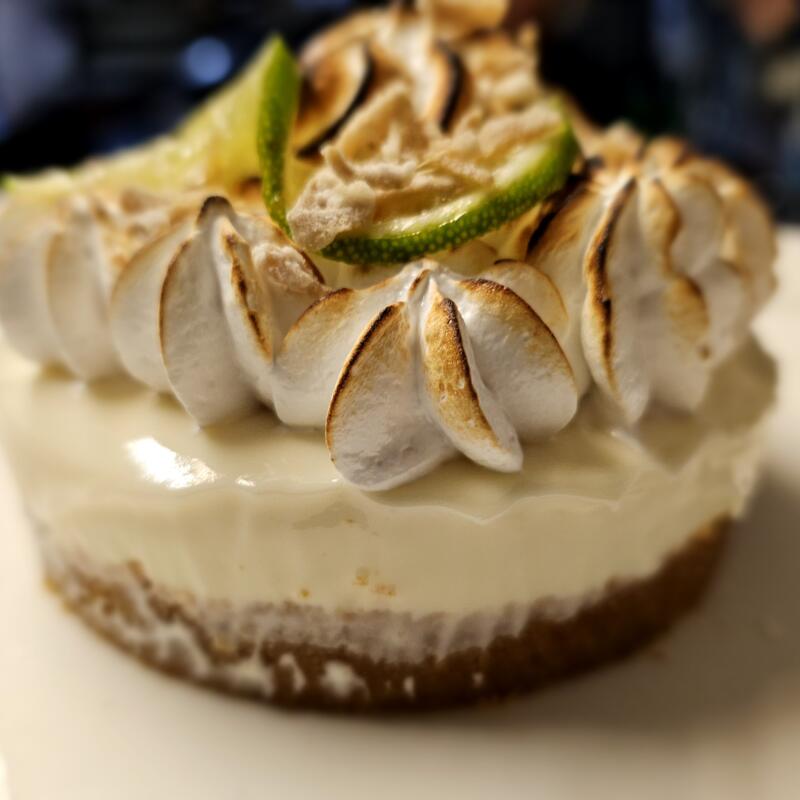 Graham cracker crust, candied limes, toasted meringue, lime gel